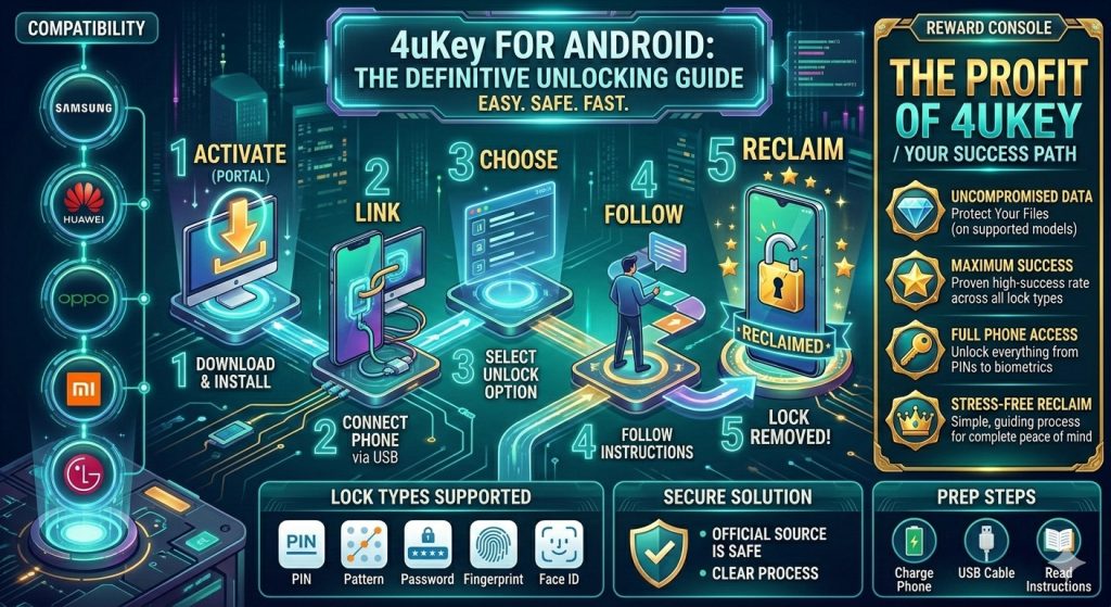 You want to unlock your Android phone. You want a safe method. You want something that works. In this guide, I will explain everything in simple English. We will talk about what 4uKey for Android is, how it works, when you should use it, and what you should expect from it.